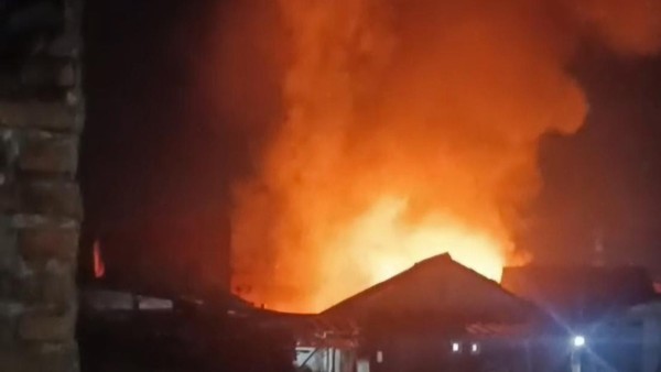 Kebakaran itu terjadi pada Selasa (2/9/2025), sekitar pukul 18.30 WIB. Api berkobar dari rumah dua lantai milik seorang warga. Warna merah menyala terlihat di gelapnya langit malam.