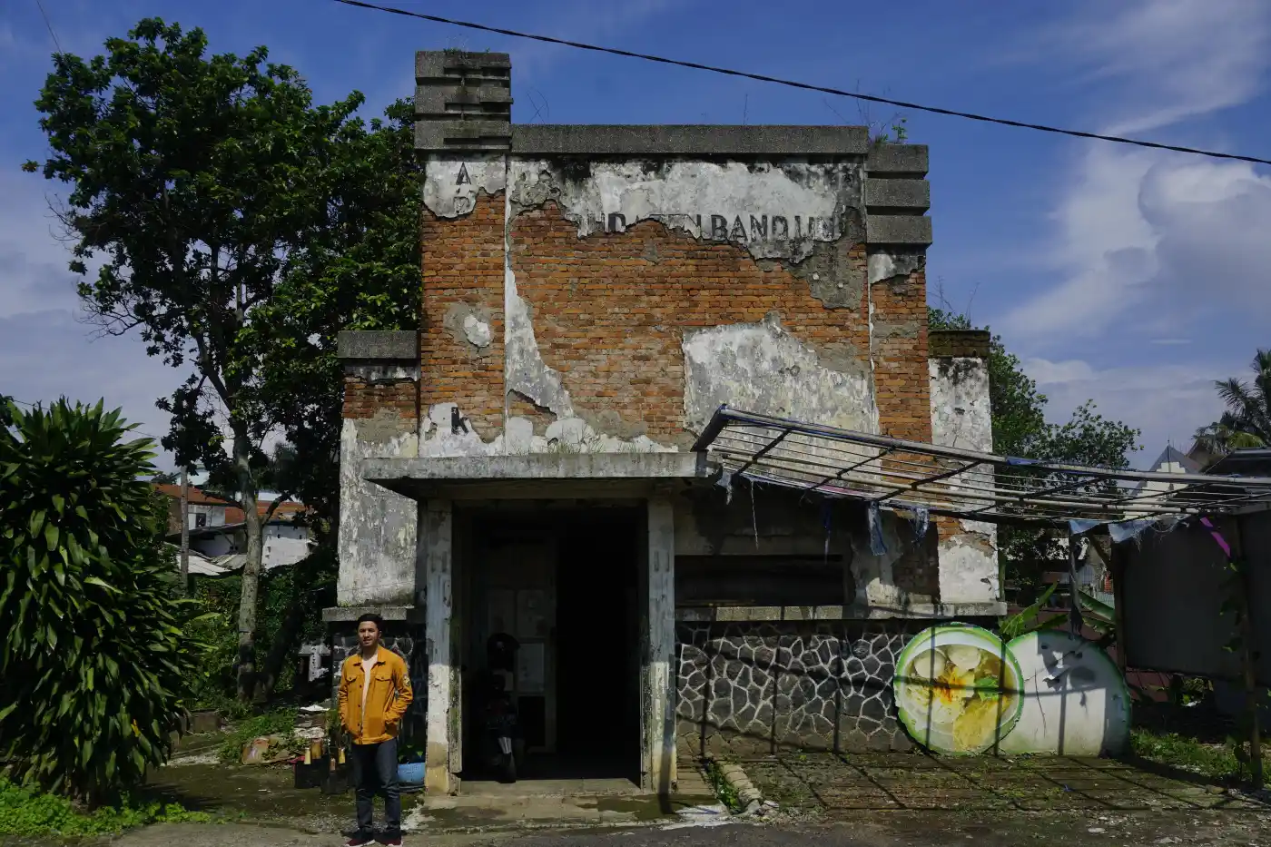 Sayang, bangunan yang jelas-jelas bersejarah itu kondisinya memprihatinkan. Temboknya rusak, cat mengelupas, atap bolong, dan banyak coretan di mana-mana. Bangunan itu cuma difungsikan sebagai gudang.